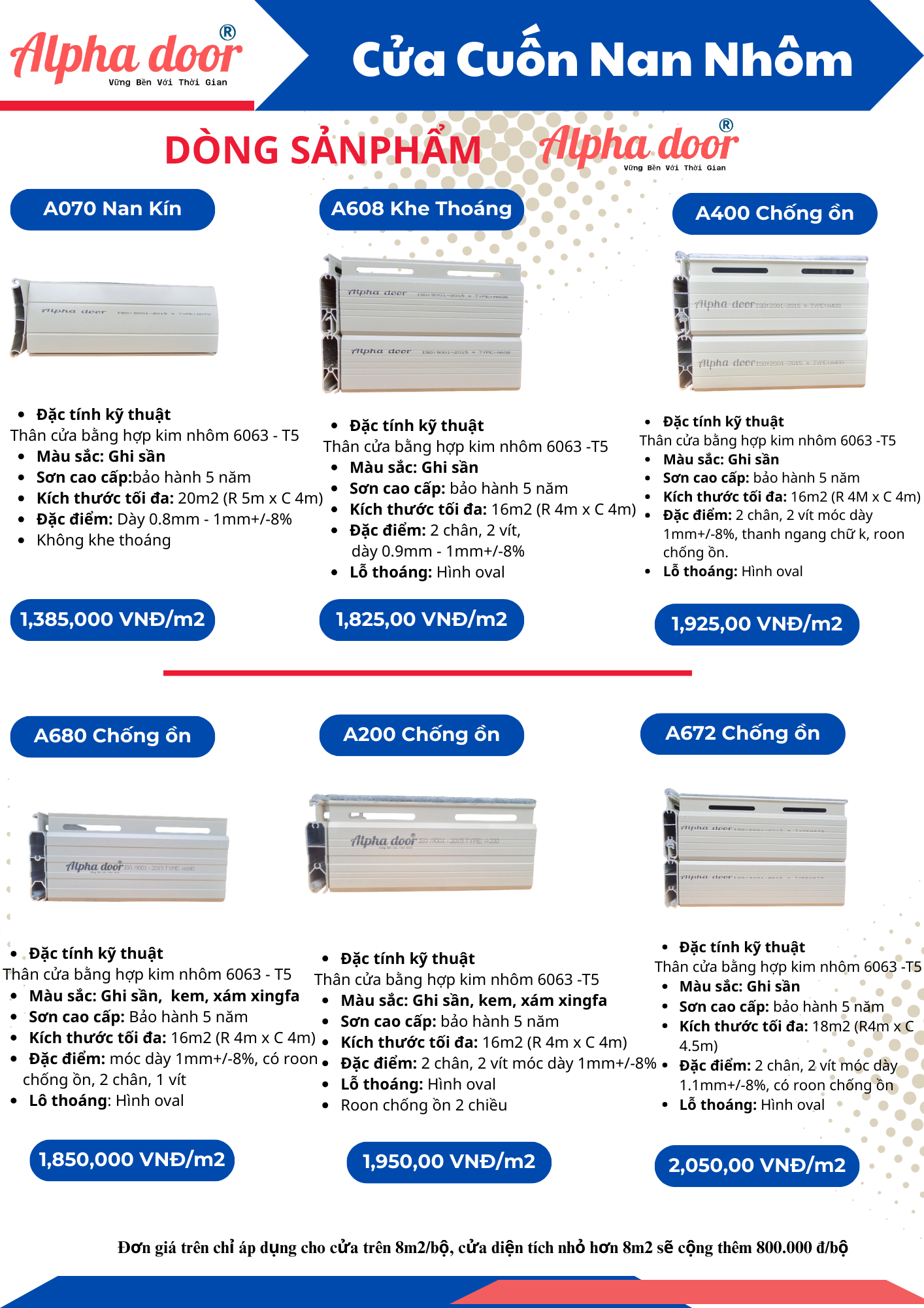 - Các thương hiệu uy tín như Alpha Door, Mitadoor, Titadoor, KDT,,, thường có mức giá cao hơn nhưng đi kèm với chất lượng và chế độ bảo hành tốt.